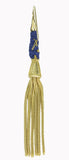 Sexy and sleek, these floral blossomed tassels are plated in Turkish gold and hand knotted with Sam DuPont signature Thai silk in faded indigo. Sealed with a gold kiss. Allow 1-2 weeks for delivery. 8.5 cm drop.