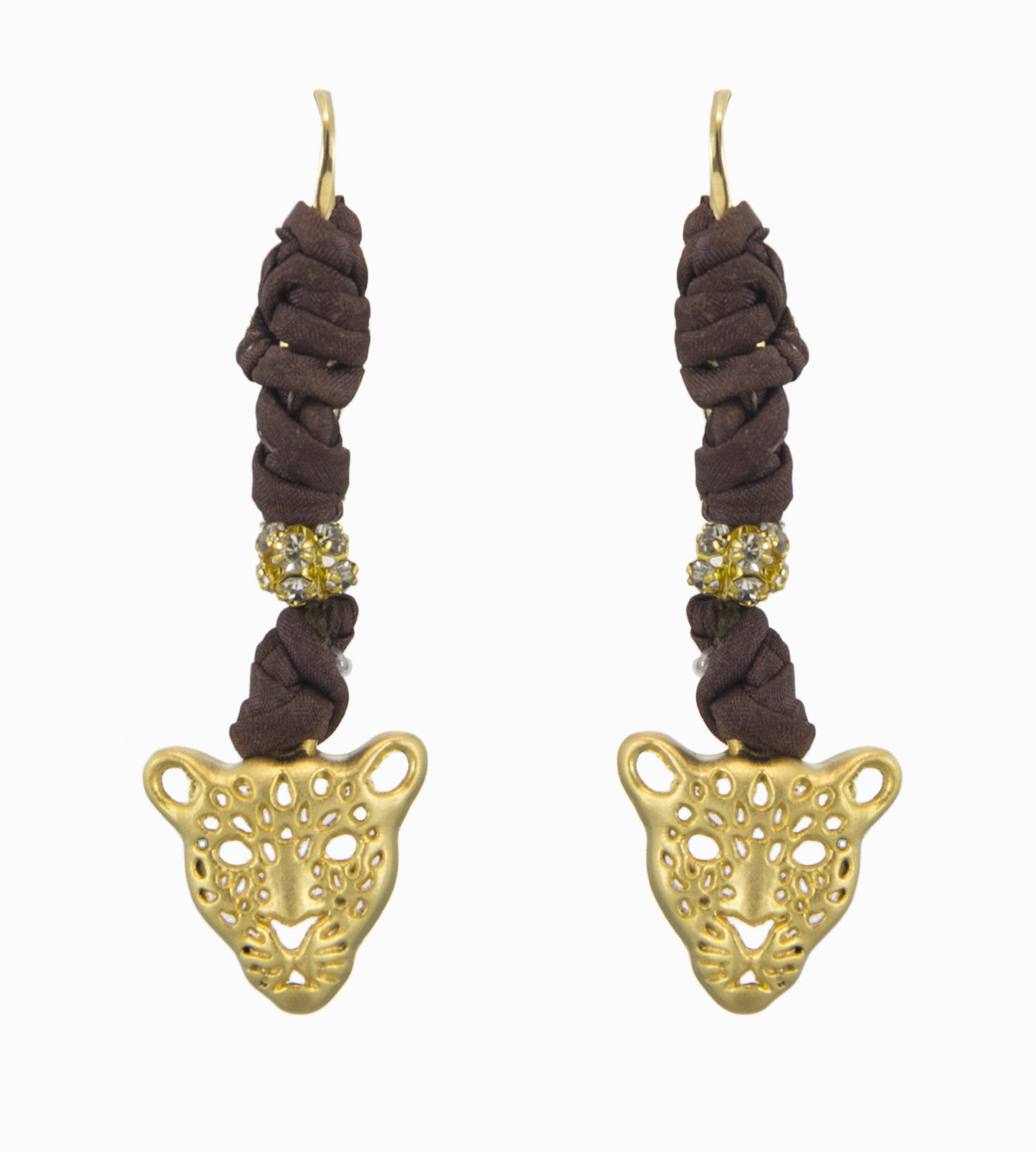 Playful and spirited, these gold plated kitties are suspended from a rope of signature hand-knotted Sam DuPont Thai silk. On hooks and sealed with a signature gold kiss. Allow 1-2 weeks for delivery.