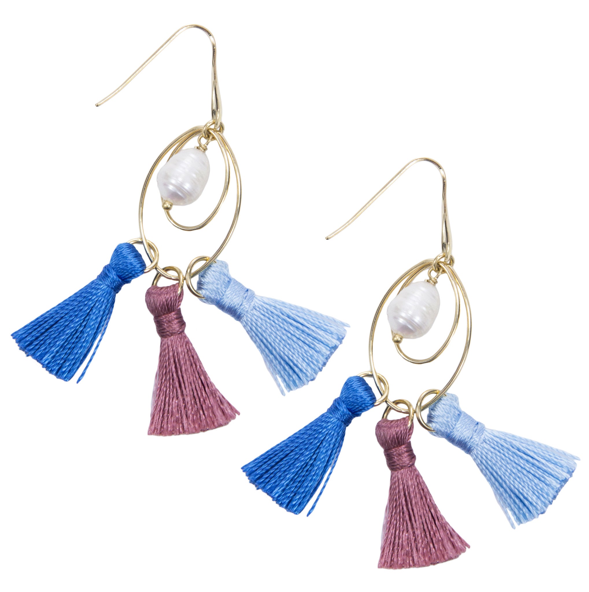 Light as air, these gold earrings are adorned with pearls and jewel toned tassels drape perfectly on the neck for a perfect bit of embellishment. Perfect for the holidays but ones you'll want to wear again and again.