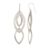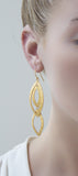 Geometric pear shaped rings of 24 karat brushed solid sterling are layered and linked on french hooks for a look of modern sophistication. Links are hand etched with tribal accents. Movement & reflection illuminate the face. Nice weight but light and easy to wear.