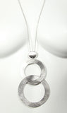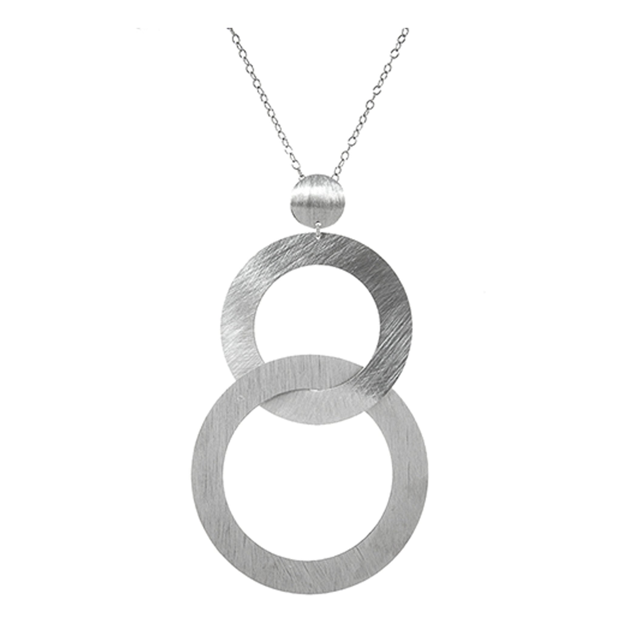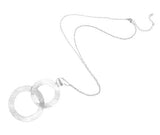 Large flat Architectural links of galvanized sterling are hand cut by laser and seamlessly linked together on a delicate long chain.  Pendant drapes the body for a modern look that elongates the body and makes a clean statement.