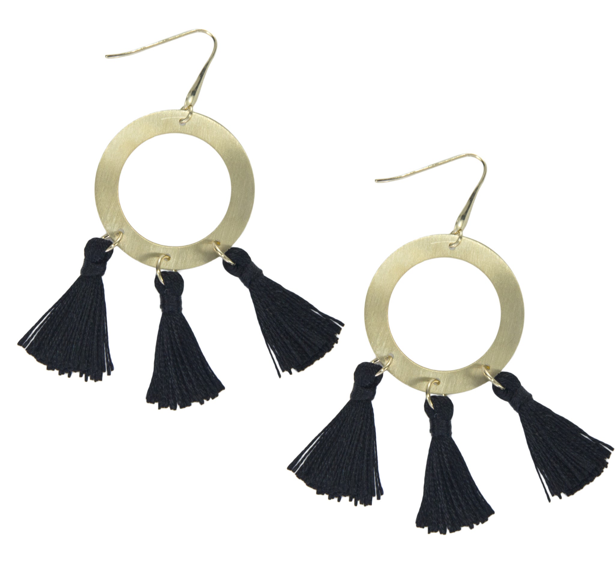 Light as air, these galvanized brass circo chandeliers are modest in size & adorned with jet silk tassels.. Perfect for everyday wear
