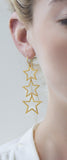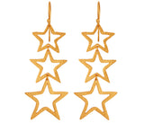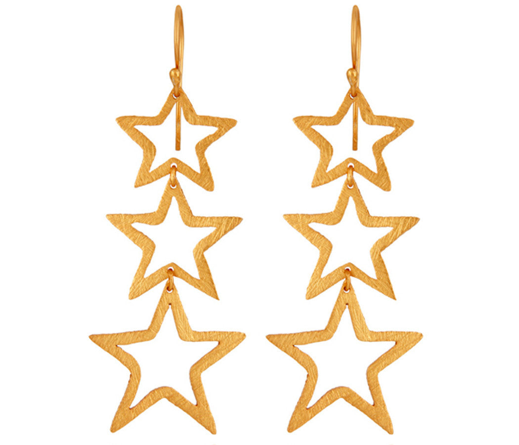 Dangling stars of 24 karat brushed gold vermeil are linked on french hooks for a look of celestial sophistication.