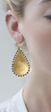 24K gold vermeil tear drops are artfully graced with texture that communicates life beneath the sea. Each earring is bordered by 28 rough-cut, bezelled turquoise stones for a colorful contrast & finish. Classicly organic. Solid weight but not heavy on the ear. French hooks.