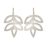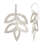 Architectural mobiles of leaves are pieced together to create a delicate combination of movement & reflection. Mini chandeliers of hollow leaves create soft oraganic earrings that drape& flutter from French hooks. Feather-weight sterling silver.
