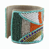 Take our Audrey cuff on a modern day Roman Holiday- the colors and styling are a nod to the playful yet refined spirit of the breathtaking Amalfi Coast. Pop it on your wrist with a sleeveless silk shell and tailord capri pants and kedsfor a sporty & spirited afternoon. Signature hand-crafted Devi Cuff by Sam DuPont. An adventurous statement piece of luminous color! Adorned with intricate patterns of colorful glass beads, all cuffs are Pliable for an effortless and elegant fit. Natural linen lining adds style and comfort. Timeless color.