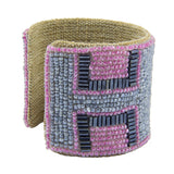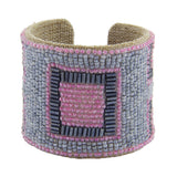 Our signature Mondrian pattern invites all seasons with a soft blend of blue-grey and iridescent lilac - a polished & elegant statement.. Signature hand-crafted Devi Cuff by Sam DuPont. An adventurous statement piece of luminous color! Adorned with intricate patterns of colorful glass beads, all cuffs are moldable for an effortless and elegant fit. Natural linen lining adds style and comfort. Pop a simple white shirt and jeans or add a flash of color to a simple sheath. Timeless color.