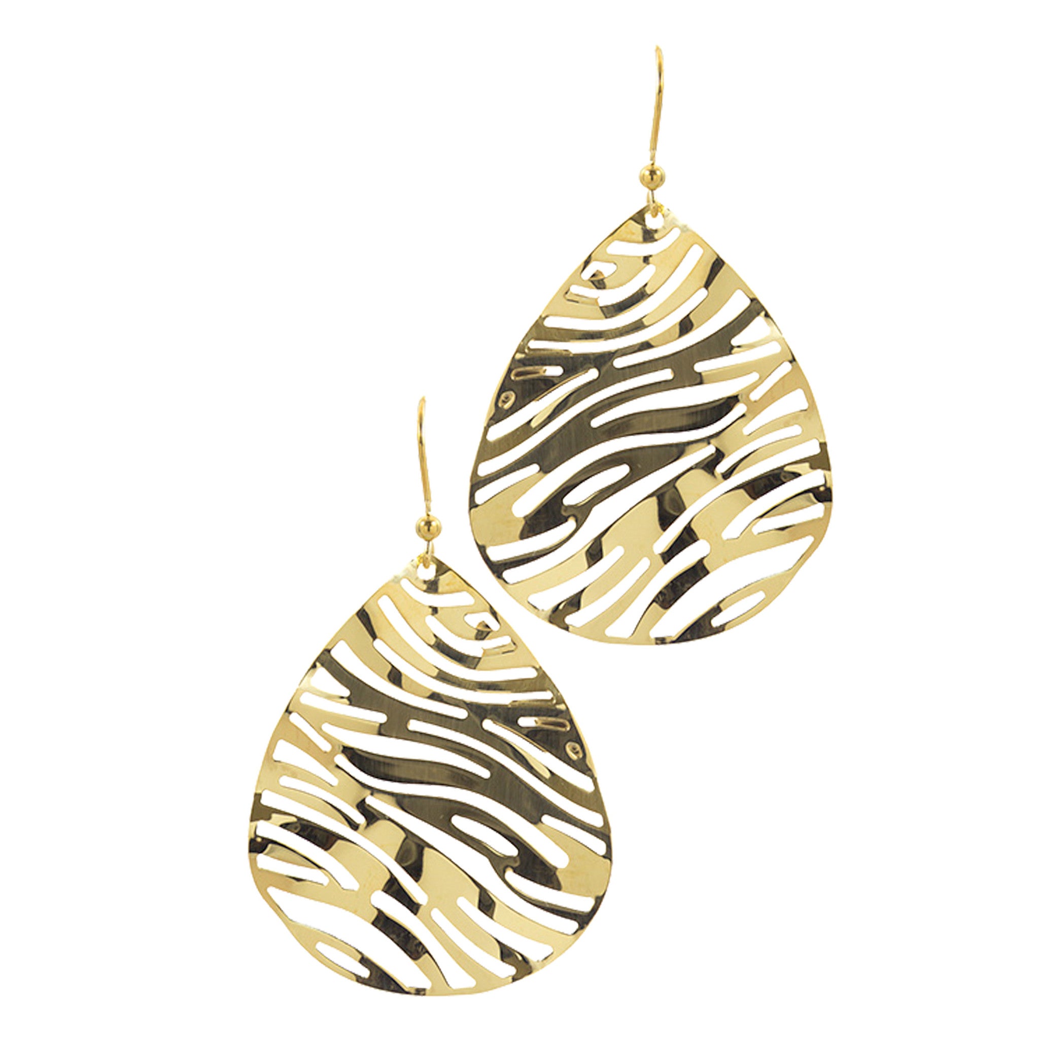 Lightweight Sheets of polished Italian brass are laser cut & sculpted by hand to create these exquisite tears of modern art that add a soft and sophisticated take on animal print. Articulated French hooks.