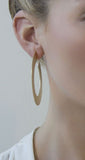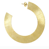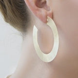 Modern flat hoops are hand cut by laser from galvanized brass. Very chic.