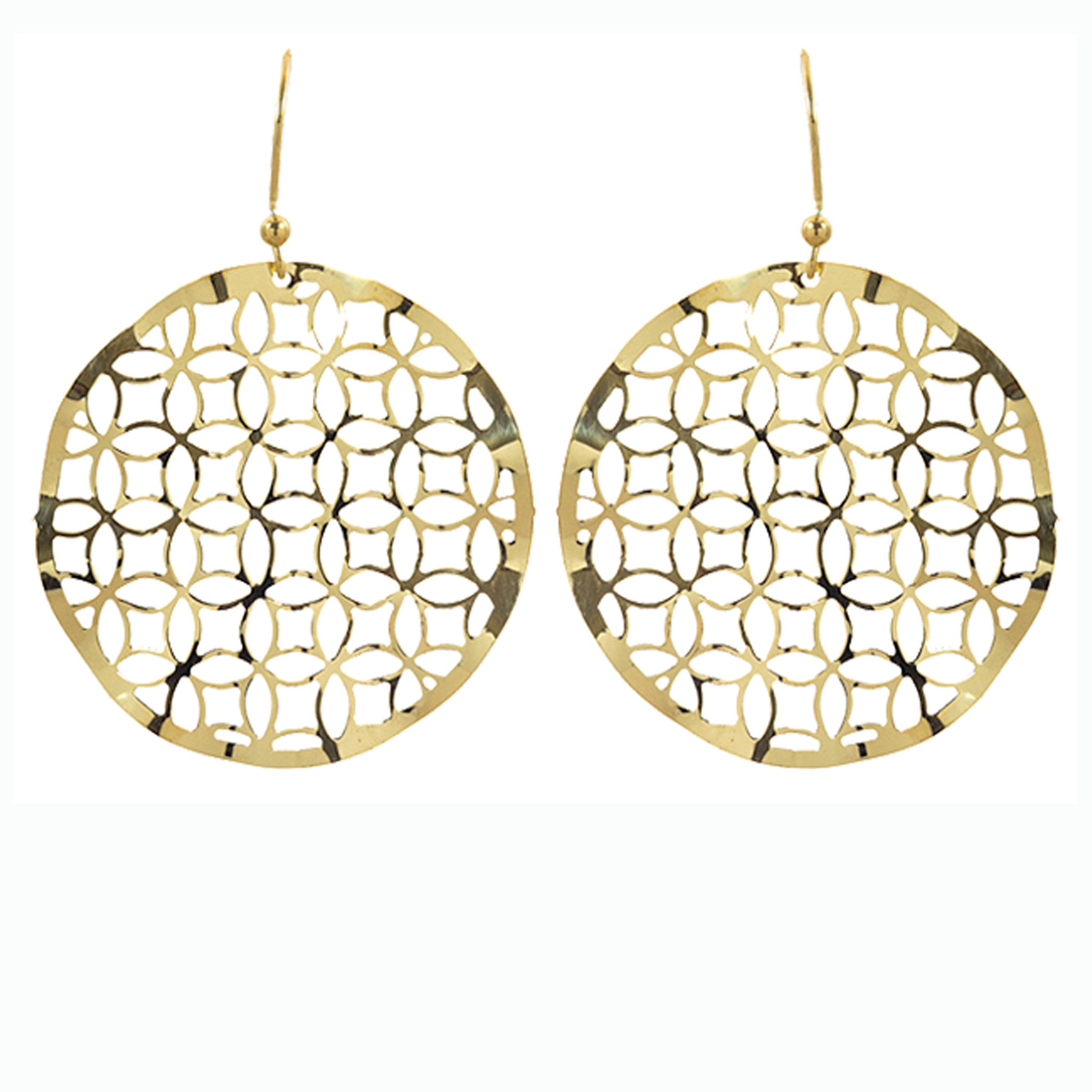 Lightweight Sheets of Galvanized Italian brass are cut and sculpted by hand to create these exquiste rounds of modern art that add the perfect touch of every-day "cool" to any look. Articulated French hooks.
