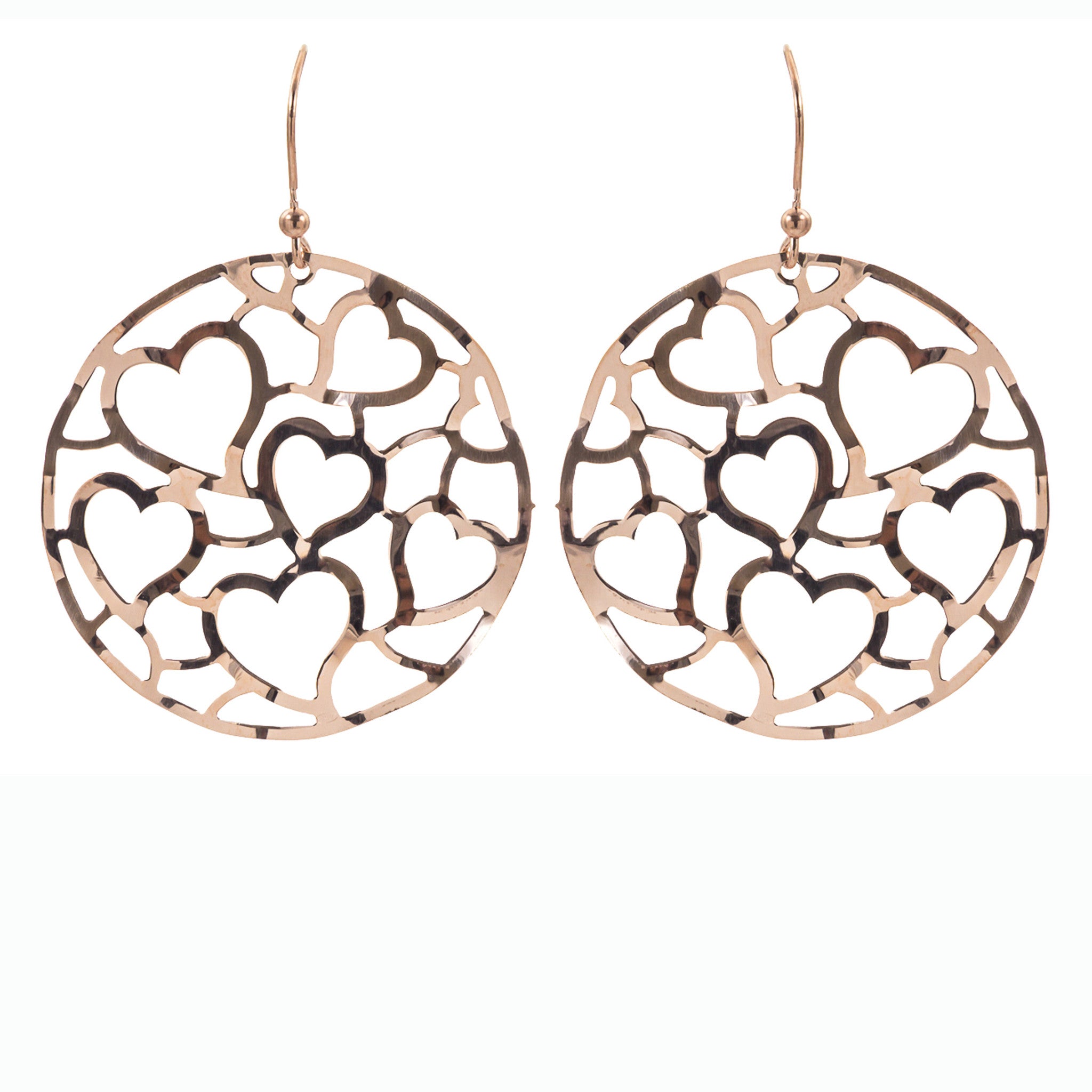 Lightweight Sheets of brass are cut and sculpted by hand and plated in a perfect shade of shiny rose gold to create these affectionate rounds of modern art that add edge and high style to an every day "heart" earring.