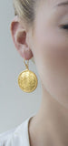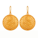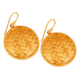 These brilliant 24 karat Indian gold over sterling petite medallion drop earrings are embossed with our signature Sam DuPont pattern of French Colonial Rattan for an accent of rich color & sophisticated texture. For larger statement, please see our larger rattan medallions.