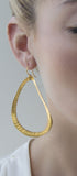 Feather-weight sculpted 24 karat vermeil tear shaped drops represent elegant yet simple architecture. Nice in size, but easy & light for day into evening wear. French hooks.