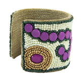 Signature hand-crafted Devi Cuff by Sam DuPont. An adventurous statement piece of luminous color! Adorned with intricate patterns of colorful glass beads, all cuffs are moldable for an effortless and elegant fit. Natural signature linen lining adds style and comfort. Timeless color wearable any season.