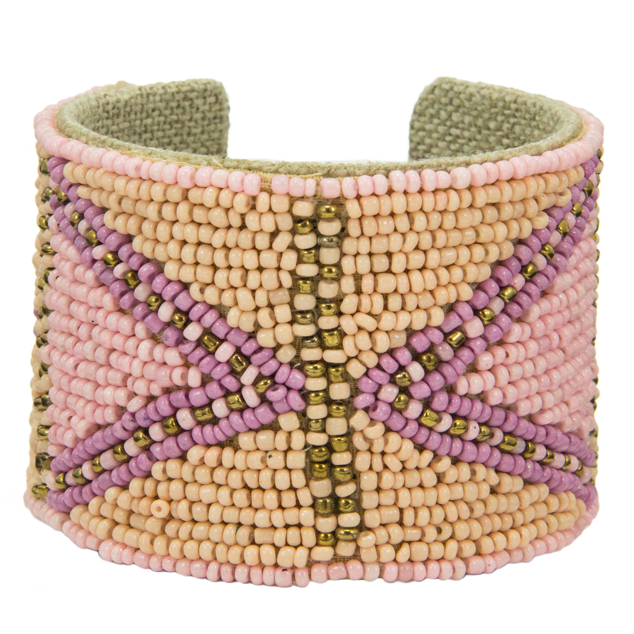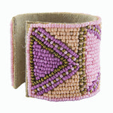 Hand-crafted Devi Cuff by Sam DuPont. A perfect pop of luminous color. Sewn with intricate patterns of colorful glass & resin, all cuffs are flexible for an effortless and elegant fit. Signature natural linen lining adds organic style and comfort. Timeless, affordable luxury.