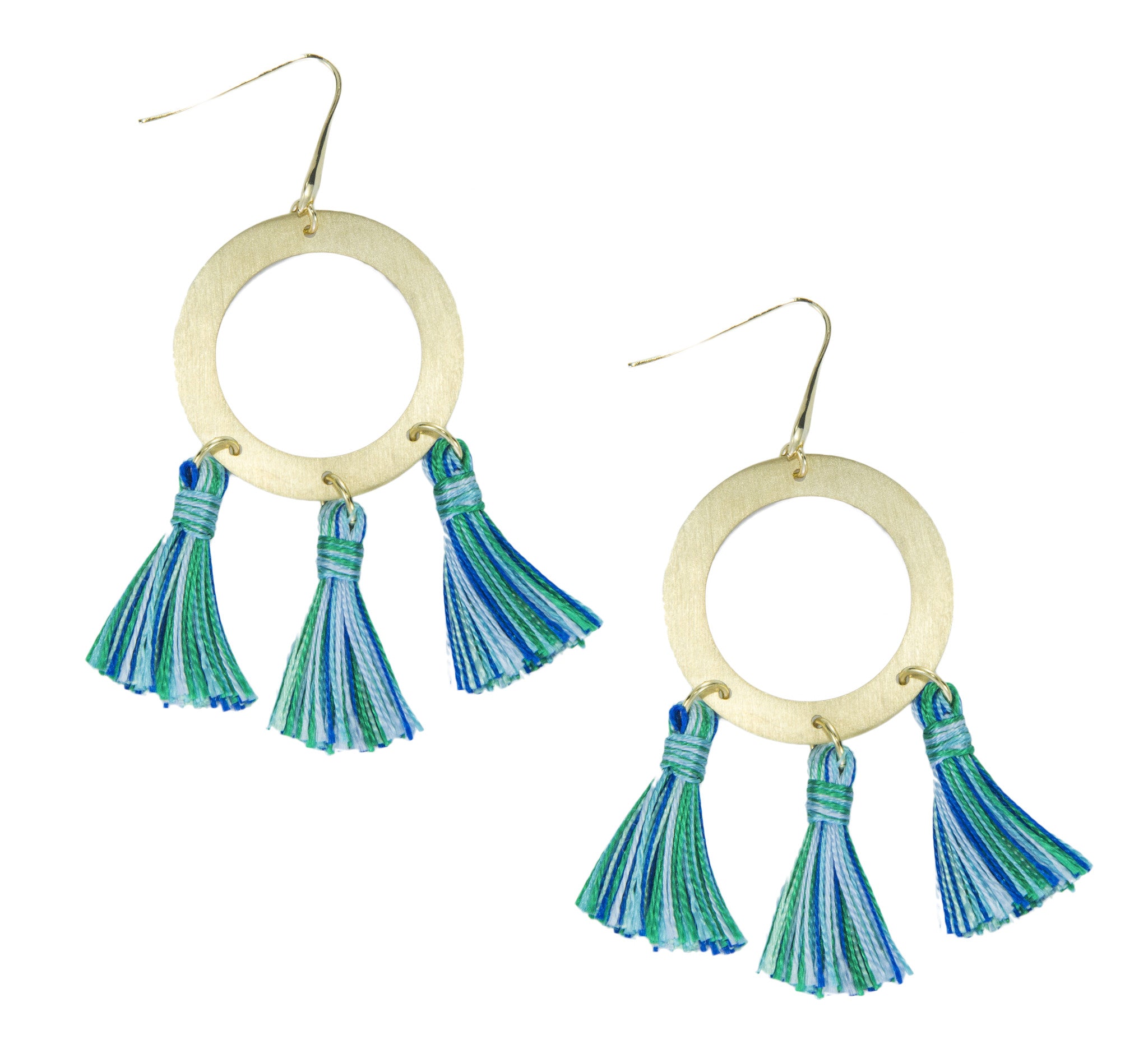 Light as air, these galvanized brass circo chandeliers are modest in size & adorned with jet silk tassels.. Perfect for everyday wear